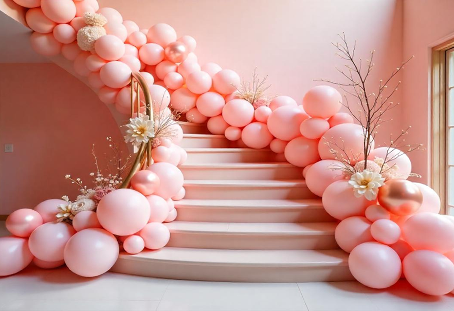 Incorporating balloon staircase rails into your decor is relatively simple and offers a high-impact result without a hefty price tag. You can use various balloon sizes and shapes to create depth and texture, adding a dynamic element to your design. For added charm, consider interspersing flowers, ribbons, or fairy lights among the balloons.