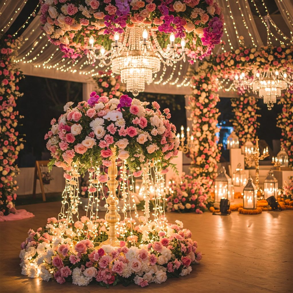 The big day is close, and you still have to figure out what to do about the outdoor lighting. Does this sound like you? If yes, then you’re on the right page! Be it for a small wedding in a backyard or a grand open wedding at a farm; our outdoor wedding light decoration guide will help you decide which lighting setup would be ideal. In this article, we will be covering everything from the basics of understanding lighting themes to safety measures that ensure guests can have fun without risking a blackout. So, without any further ado, let’s get started with exploring the top 7 tips for outdoor wedding light decoration. The Purpose of Outdoor Light Decorations In Your Wedding At first glance, the purpose of outdoor light decorations is usually seen in terms of its functionality in brightening up the space. But, in modern weddings, outdoor lighting is not only for illumination but also for setting the entire vibe of the wedding, highlighting special places, and creating an immersive feeling. In outdoor uses, light also creates a cozy atmosphere that makes guests feel more comfortable at the venue. Well-lit pathways, dining areas, and dance floors minimise the risk of accidents while encouraging free movement. Your lighting setup can also affect how reliable it is during a power outage to keep the party going. Top 7 Tips For Outdoor Wedding Light Decoration Now that we’ve covered how proper lighting can elevate the experience of a grand wedding, let us move on to discussing how you can achieve the perfect lighting setup. The 7 tips given below are easy and actionable, which guarantees that your lighting setup at the venue will be affordable yet immaculate. 1. Use weatherproof lighting fixtures Outdoor weddings are susceptible to unpredictable weather changes, such as rain or extreme heat, which makes it important to choose weatherproof lighting equipment. These weatherproof lights not only keep your guests safe from electric hazards but also ensure that they do not stop working in such adverse weather conditions. Weatherproof light fixtures are also wind-resistant, which helps you keep the light beams where you set them even in case of strong winds. If you happen to buy such fixtures, they also do better in storage as they are built to be corrosion-resistant and are built with durable materials. Planning your outdoor celebration? Get more Indian wedding decor inspiration to elevate your entire venue’s look and feel. 2. Understand the layers of lighting and their importance Much like a delicious wedding cake, lighting also has layers that serve their own purpose. Each layer adds exclusivity and grandeur to the venue, making weddings go from cozy to spectacular. Let us understand what each lighting layer does to make your wedding look unique. Layers of lighting: The layers of lighting that we will cover here will be divided in terms of their functionality between area illumination and decoration. The three layers that we will focus on are ambient lighting, task lighting, and accent lighting. Their descriptions and examples are as follows: Ambient Lighting: This is the foundational layer of outdoor lighting decorations, as ambient lighting is used to illuminate the entire venue. Since this is a functional piece of the lighting setup, customization is limited; however, this makes it easy for you to select the lighting fixtures that you would want to use. Some examples of ambient lighting fixtures are: LED floodlights String lights Lanterns Chandeliers Globe Lights Task Lighting: Task Lighting is used to illuminate specific areas at the venue that are associated with a common task or activity. This lighting layer is dual-purpose as it is used for illumination and decoration. Typically, task lighting is brighter or contrasting to the ambient lighting to highlight areas such as the dance floor, dinner tables, and pathways. Here are some examples of ambient lighting fixtures: Pendant lights Lamp posts LED spotlights Recessed lights Accent Lighting: Accent lighting highlights specific features or decorative elements of your outdoor wedding, adding visual interest and creating a dramatic effect. It draws attention to focal points like floral arrangements, architectural details, or the couple’s wedding cake, enhancing the overall aesthetic of the event. Accent lighting fixtures include: Uplights Wrapped string lights LED light strips Candlelights Neon signs 3. Have backup power sources Having backup power sources is essential for outdoor venues, especially remote ones, as they can sometimes experience unreliable power supplies, making a contingency plan critical. Portable generators are a popular choice, providing a dependable energy source to keep your lights, sound system, and other equipment functioning without interruption. It’s wise to choose a generator with sufficient wattage to handle your setup and test it beforehand to avoid surprises. Additionally, battery-operated or solar-powered lights for key areas should be considered a secondary precaution. Backup power guarantees functionality and peace of mind, letting you focus on enjoying your big day. 4. Order personalised lighting elements Some lighting pieces must be custom-made, and it is best to order them in advance to ensure everything is ready for the wedding. These customised lighting pieces usually include name signs and theme-specific lighting elements. And since these elements are custom, you must remember they cannot be rented. This is why it is best to list the minimum number of custom lighting elements to save on costs and have everything ready for the wedding. Some ambient lighting solutions may also have to be custom-made, depending on your venue. For instance, if your venue is too large, then off-the-shelf lights might not be enough to illuminate the entire space. Planning a Sangeet outdoors? Explore perfect lighting for sangeet stage decoration that adds sparkle and style. 5. Rent lighting solutions to save costs Most